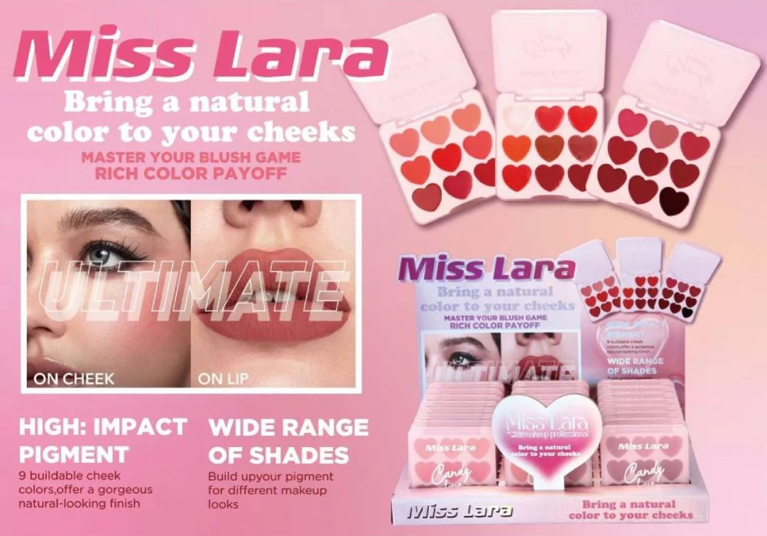 9 رنگ رژ جامد در هر پالت طراحی قلبی و خیلی کیوت داخل پالت صورتی مات پیگمنت بالا با ماندگاری خوب بافت نرم و مرطوبکننده قابلیت ترکیب رنگها برای ساخت طیف دلخواه بدون ترک و خشک شدن روی لب